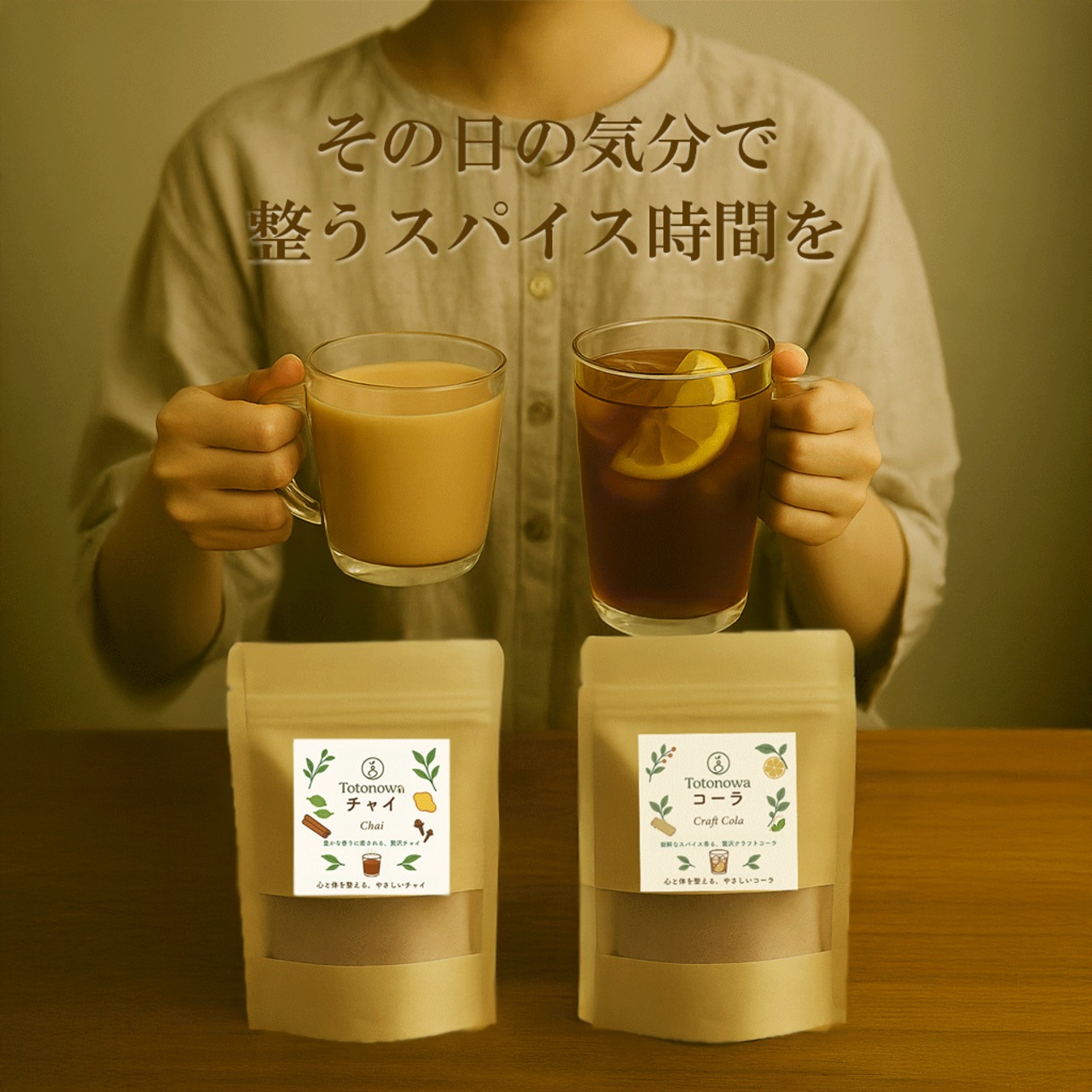 Totonowaコーラキットとチャイキットを一緒に楽しめる、限定の「整う時間セット」です。